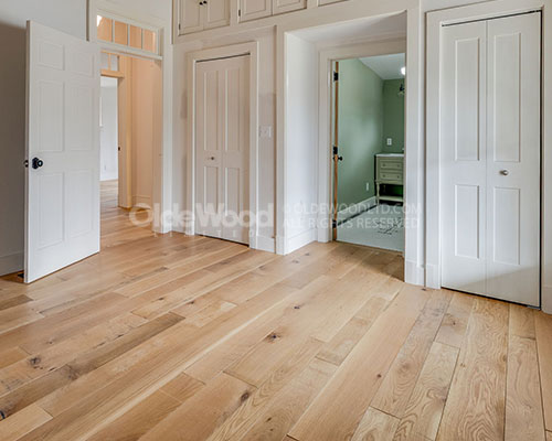 Replicating early pioneer sawing practices, our traditional flooring planks are live-sawn from fully matured, slow-growth trees. This results in tight natural grain variations, a unique appearance and a lot of character that would be removed by modern lumber grading practices. By utilizing the entire log, we are able to present you with the longest and widest planks available. This process also minimizes the amount of wood that is wasted. This rare milling practice creates a rustic wood plank flooring product that features and includes multiple grades of lumber from board to board. The beauty of this rustic hardwood flooring is accented by a mixture of select-grade cuts, such as rift and quartered, plain and quarter-sawn boards. These normally are separated and sold at a premium price by other manufacturers.