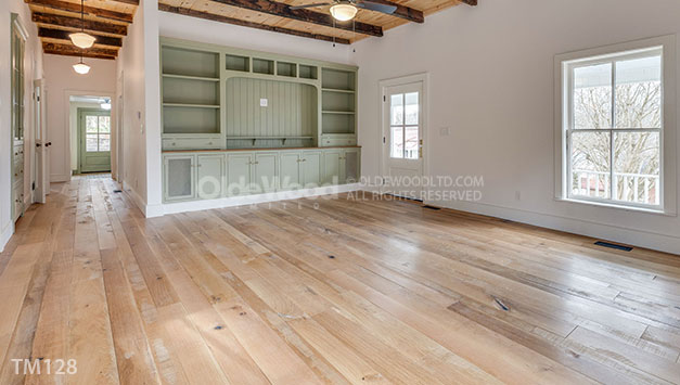 Our Mountain Oak wide plank flooring is cut from select, fully mature wood timbers. Durable Mountain Oak hardwood flooring features robust, dense grain patterns, saw marks, knots, occasional worm holes, natural face and end checking and naturally occurring over/under wood which creates the dynamic authentic old world appearance of this product.